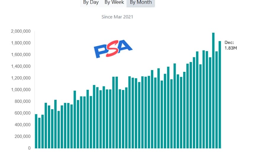 As per data from GemRate, the total volume of card grading increased by 32% compared to the previous year, highlighting how deeply embedded grading is in the hobby. In just December, approximately 2.43 million cards were graded by the five largest grading companies (PSA, CGC, Beckett, SGC, and TAG).