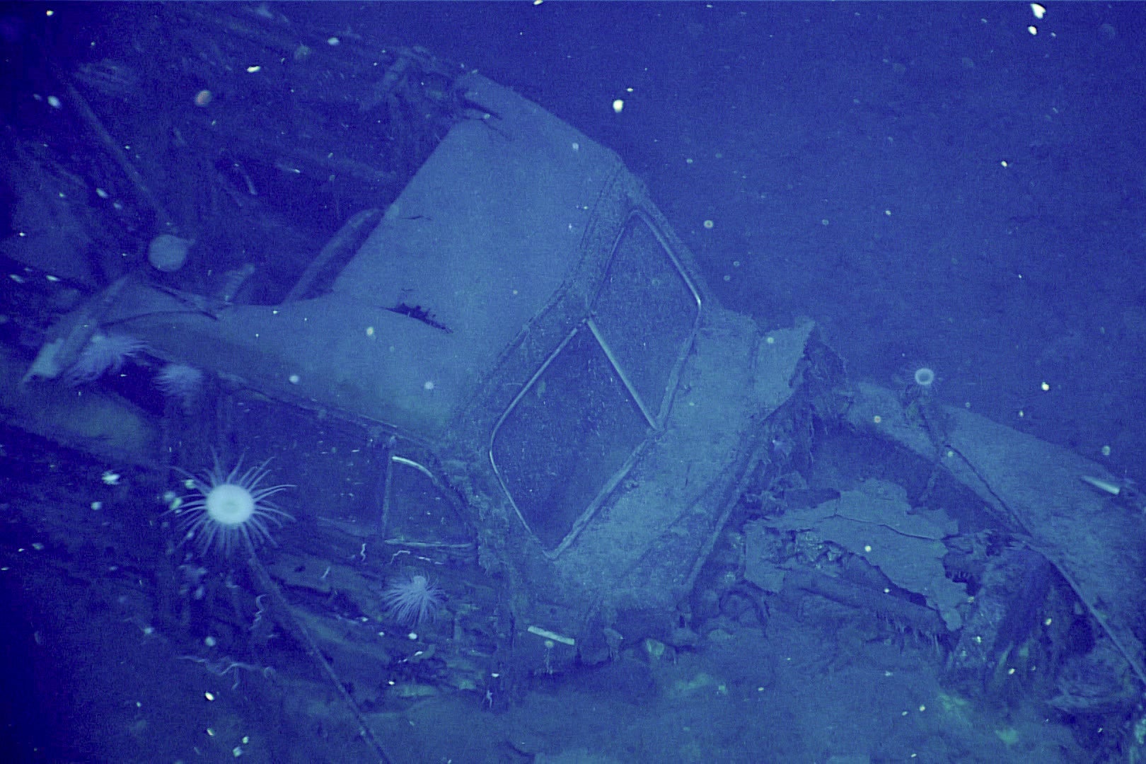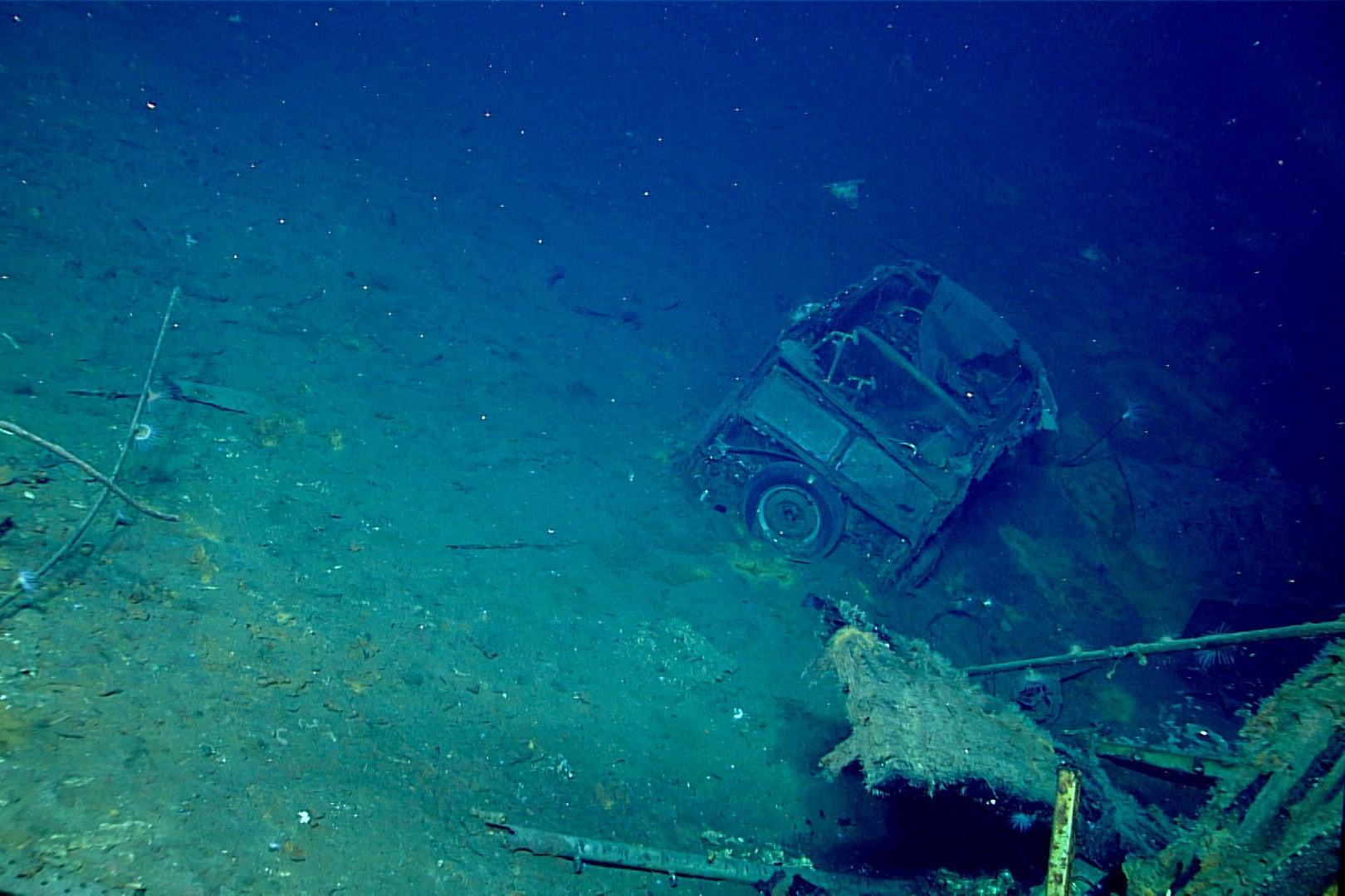 ; the NOAA crew also discovered an antique vehicle inside the rear hangar of the vessel.