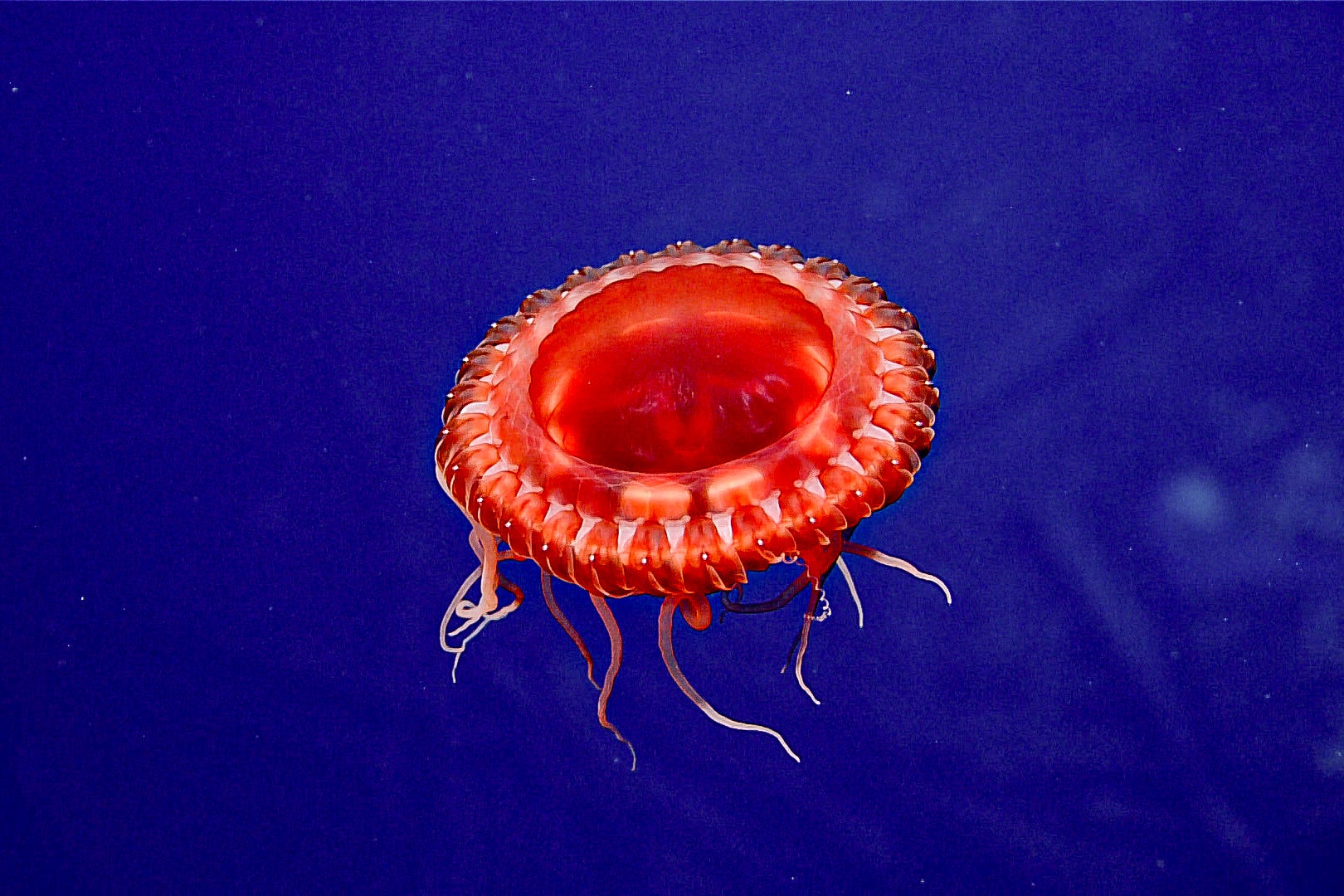 Along with the traces of combat, the NOAA might have also identified a novel type of jellyfish. During their dives, the exploration team came across a petite, vividly red and white jellyfish; however, it remains uncertain whether this is an undiscovered variety or one that has been documented before.